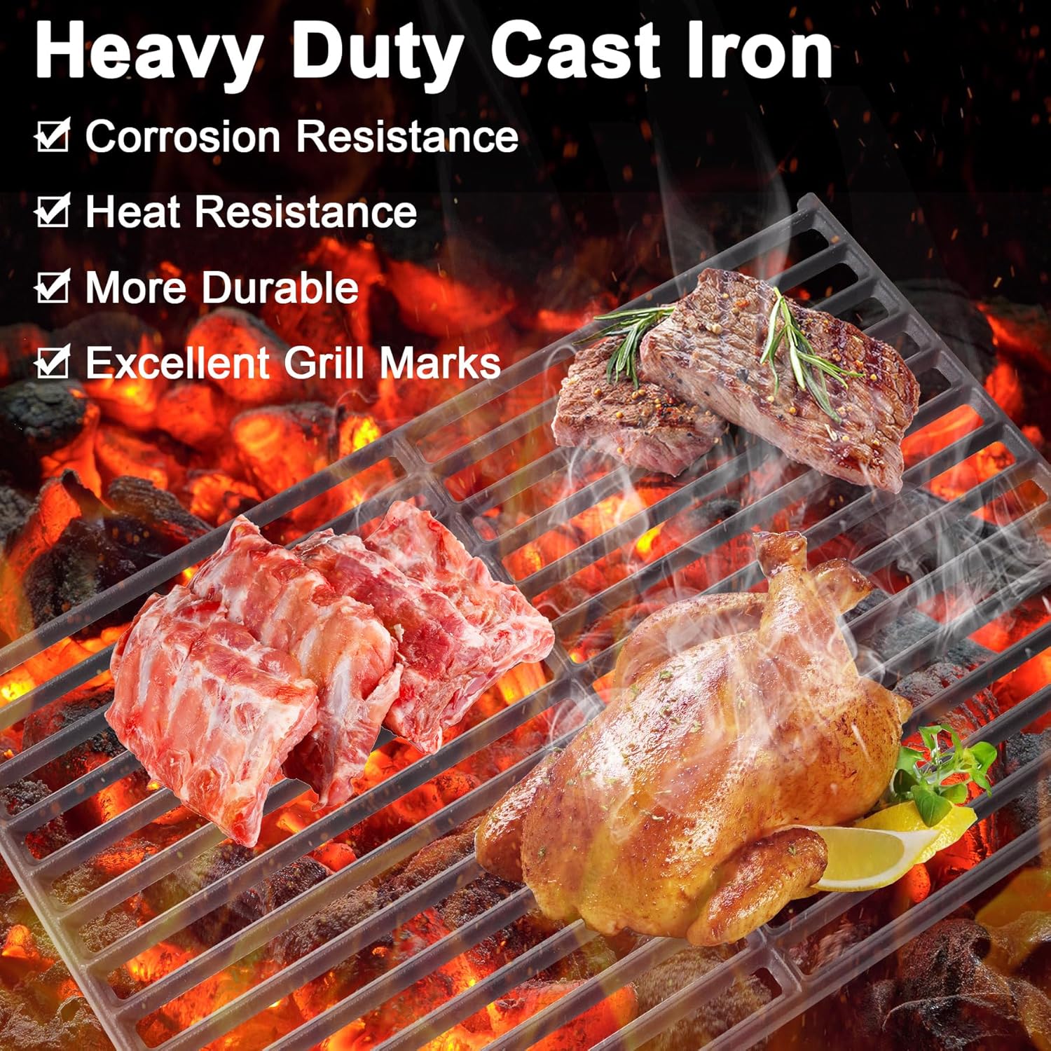 16.3 Inch Cooking Grate Replacement Parts16.3 Inch Cooking Grate Replacement Parts for Monument Grills Mesa 300, Mesa 400M, Cast Iron Grill Grate for Monument Grills Replacement Parts, A107 Replacement for Monument Grill Accessories,Non-stickFits for Monument Grill: Non-stick Cooking Grate Replacement Parts for Monument Grills 3-Burner Mesa 300, Mesa 400M,for Monument Grill Accessories. Cast Iron Grates is their ability to retain and distribute heat evenly, resulting in a more consistent cooking experience. This ensures that your food cooks thoroughly and is evenly seared, creating a delicious flavor profile:Cast iron grates are easy to clean, heat-resistant, and corrosion-resistant, making them the perfect companion for barbecuing;Cast iron grates can cook a variety of foods, producing beautiful grill marks.Specifications:Materials: Made of Upgrade Cast Iron;Package includes:3-Pack Matte Cast Iron Cooking Grid with An Inner Round Area Replacement Parts for Your Monument Grills..