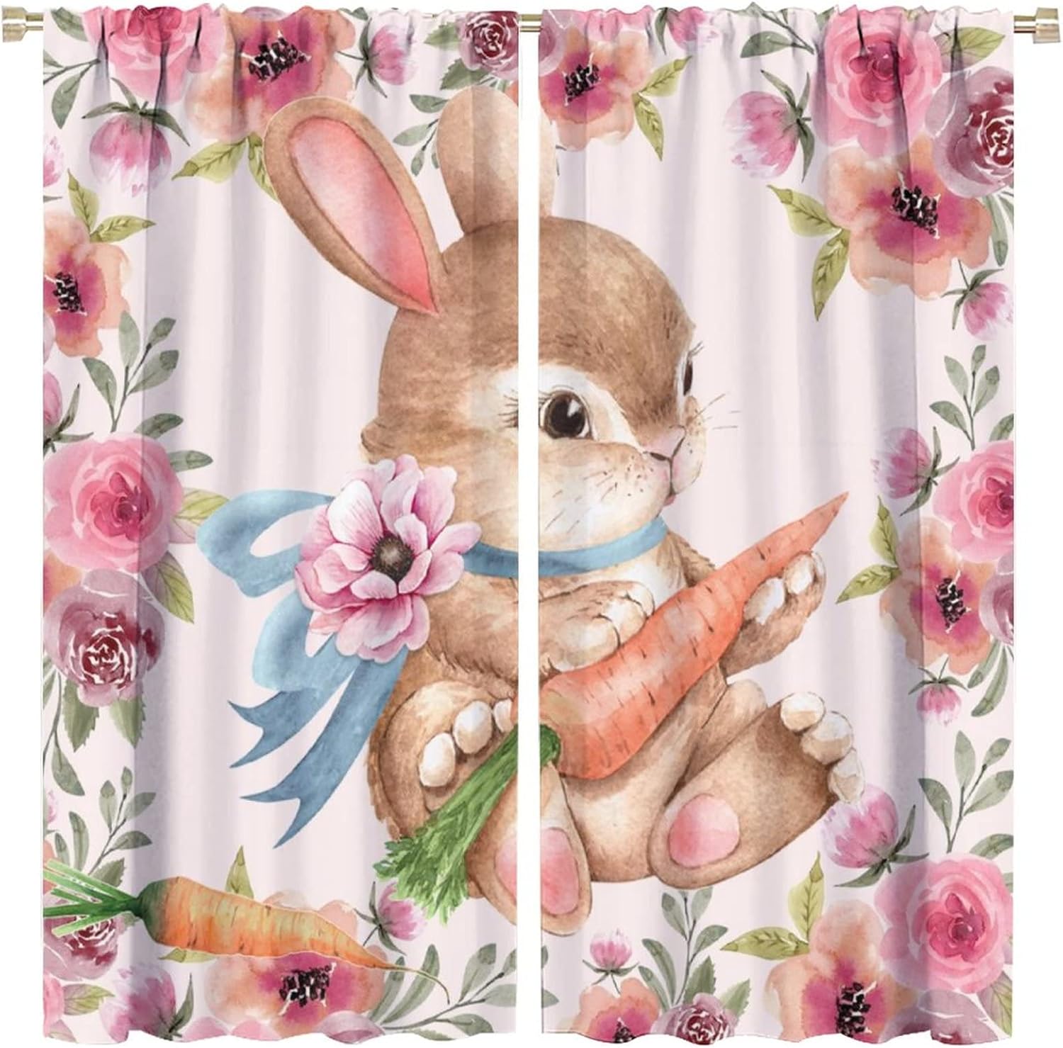 This Cute Bunny Curtains can block out 85%-99% sunlight and UV ray ( Darker colors work better), perfect for late sleepers and afternoon naps. Our energy saving curtains insulate against summer heat and winter chill to balance your room temperature, reduce outside noise .This Cute Bunny Curtains liven up your indoor or outdoor spaces with a sense of airiness and beauty.These Cute Bunny Curtains are suitable for the bedroom, living room, dining room, infant room, kids room, office or other public place.Material:Polyester high quality fabric curtains, warm and interesting, beautifully designed.Kindly Remind:- Don't use sharp things scratching curtains.- For proper fullness panels should slightly larger than the window size the width of your window.- 24 Hours customer support.- As different computers display colors differently, the color of the actual item may vary slightly from the above images.