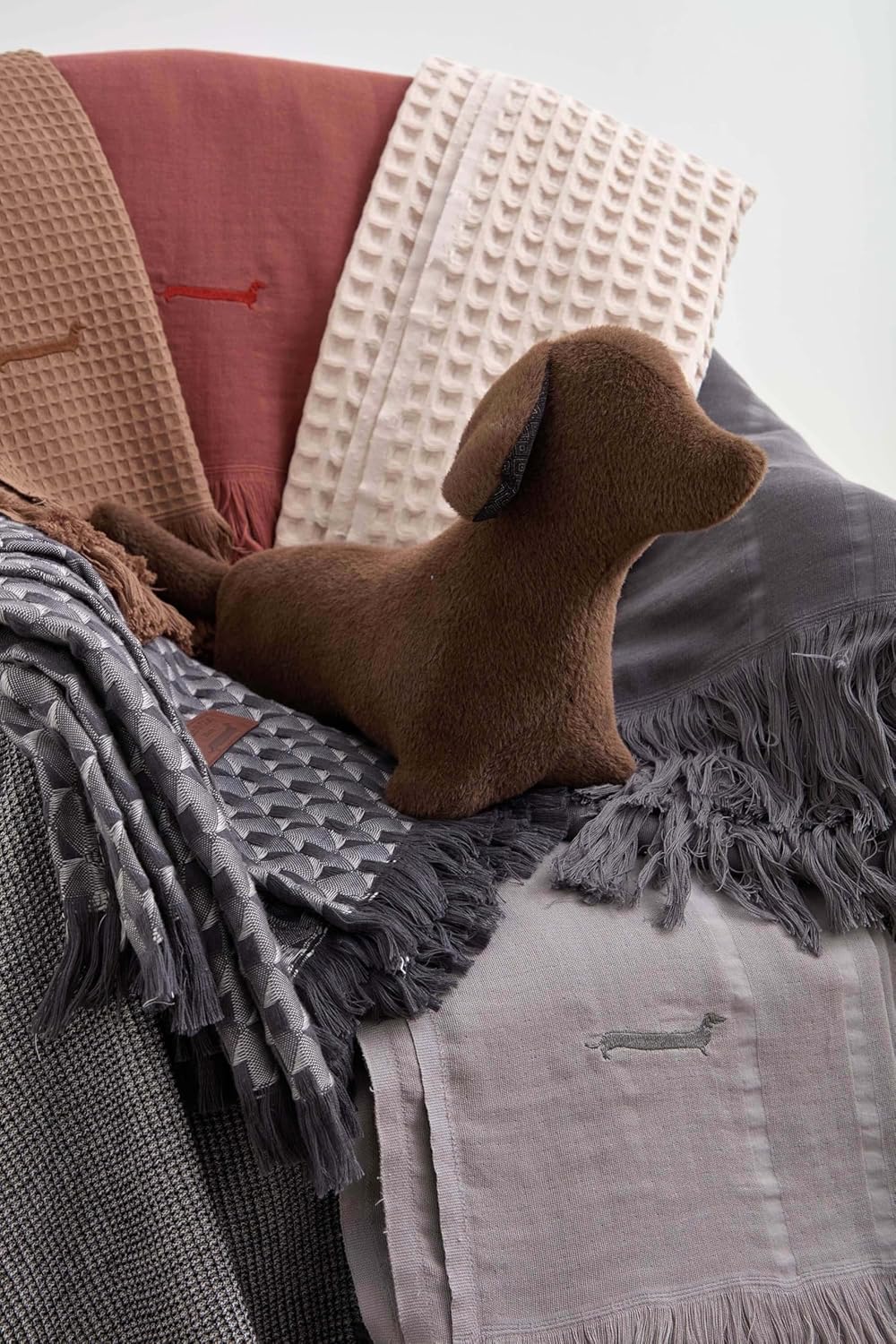 Meet the Breeze Cotton Collection by Doxie & Cozy—where texture meets tranquility. Woven in Denizli, Turkey from 100% cotton at a feather-light 160 GSM, Slate Whisper wraps you in calm with a soft, airy drape and quick-dry performance. The generous 77 x 45 in (195 x 115 cm) size offers full coverage like a bath sheet while packing flat for travel. From bath to beach to long-haul flights, Breeze elevates everyday rituals without the bulk of traditional terry. Each throw arrives in a gift-ready branded box and includes our signature logo dachshund cord charm—perfect for gifting and for keeping your throw neatly rolled between uses. If you want an entry into luxury that still works hard, this is it.